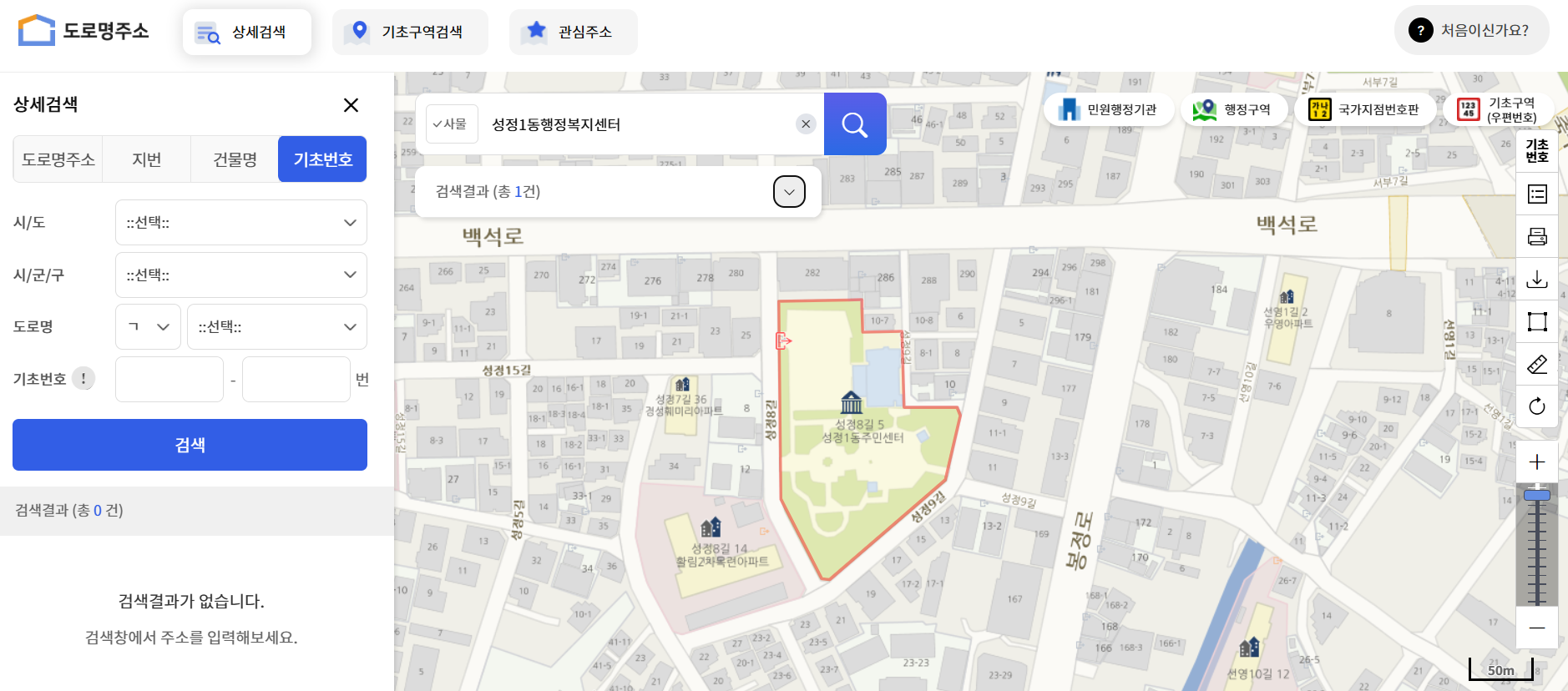 여기서 주소를 입력하고 검색하면, 관련된 주민센터 정보를 확인할 수 있습니다.