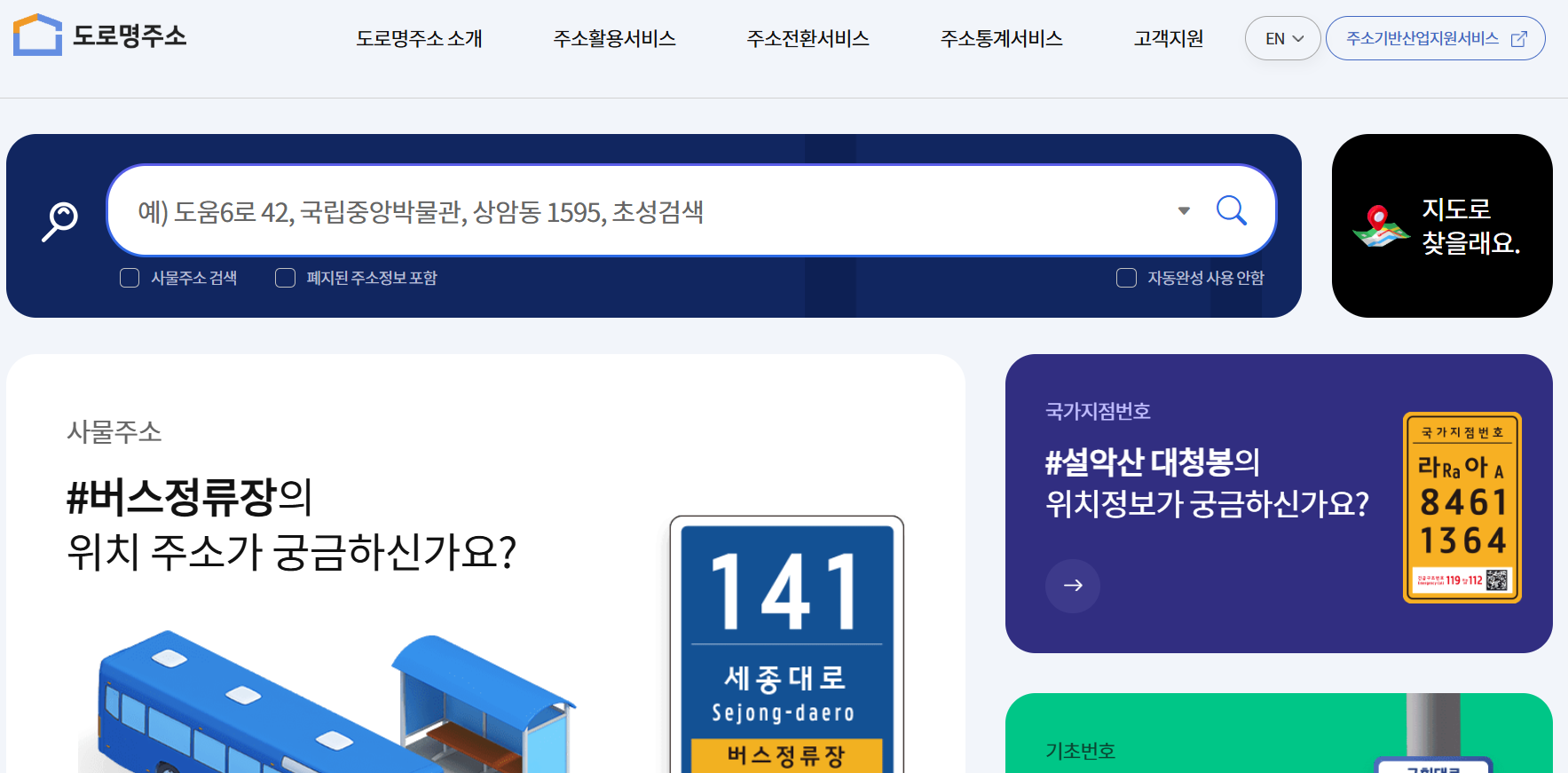 도로명주소 안내시스템에 접속하면, 아래와 같은 화면이 나타납니다.