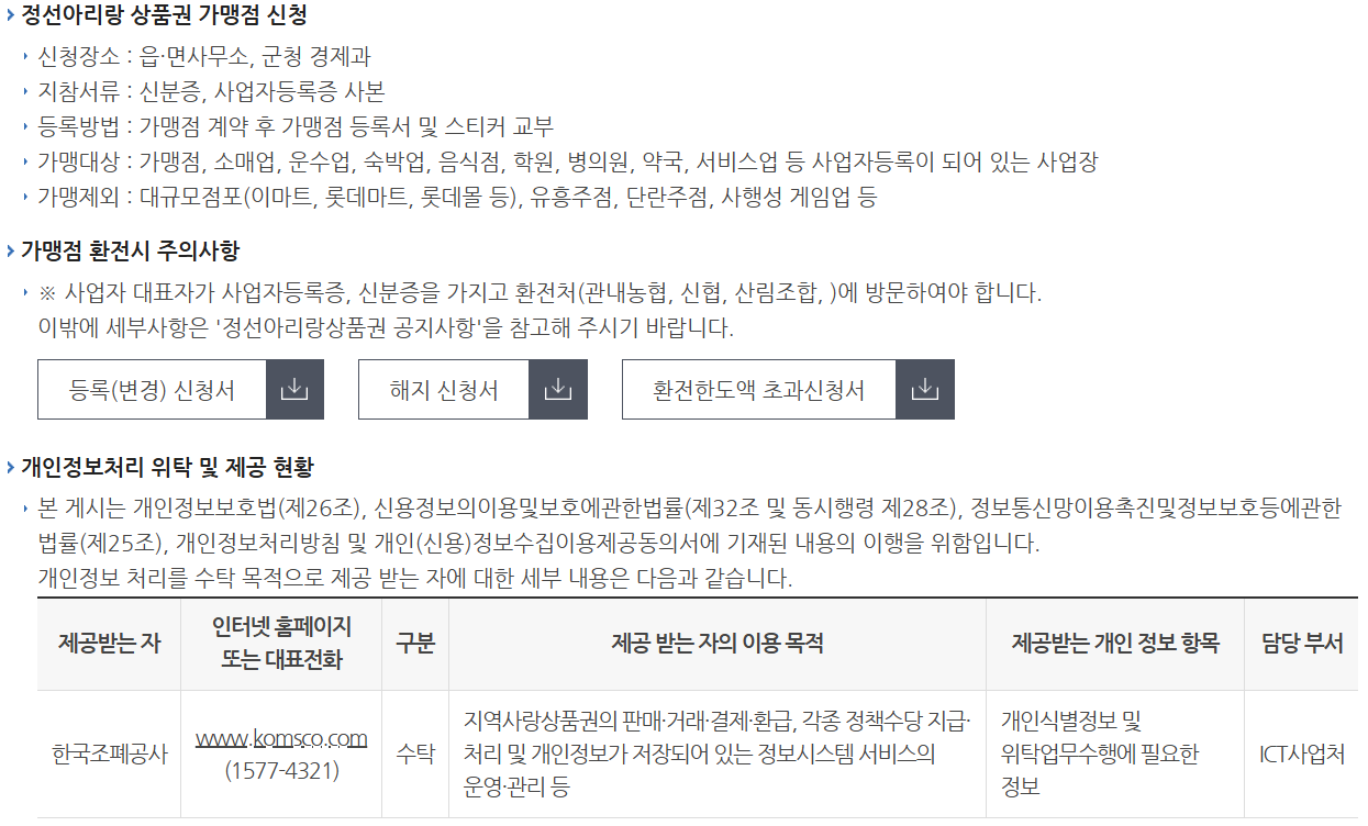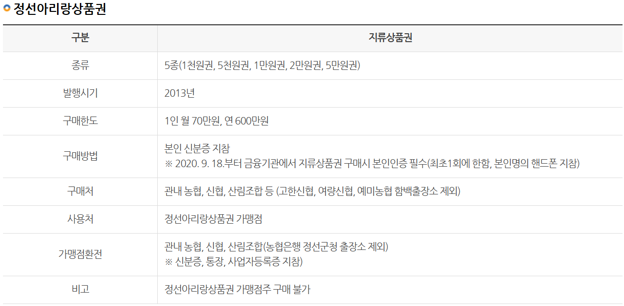정선아리랑상품권은 정선군이 발행하는 지역화폐로, 지역자금의 역외유출을 방지하고 소상공인의 경영안정에 많은 도움이 됩니다.